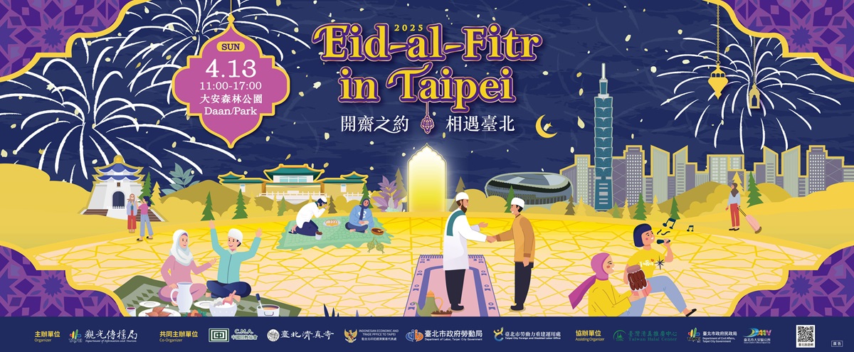 Eid-al-Fitr is one of the most important Muslim festivals. In order to promote cultural exchanges, the Taipei City Government organizes “2025 Eid-al-Fitr in Taipei” at Daan Park. Muslims and citizens are invited to come together to visit halal market, watch performances, walk in each other’s shoes, and experience the friendly and diversified Taipei!