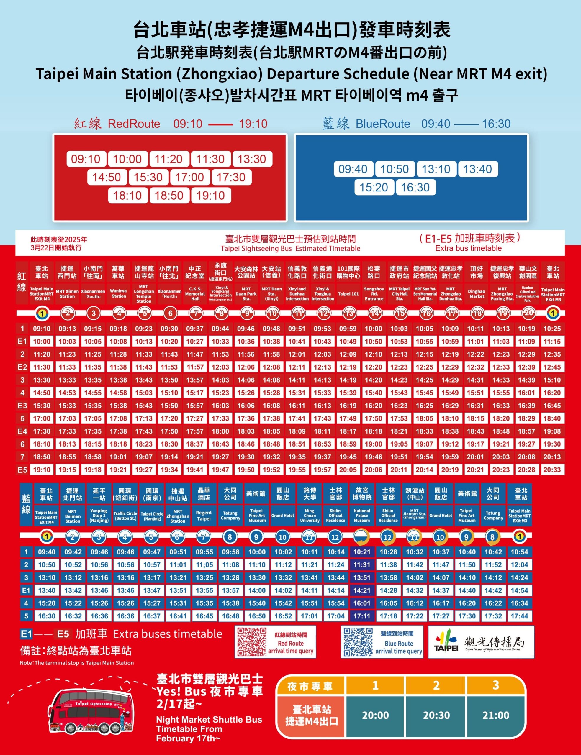 The sightseeing bus operates on two color-coded lines: the Red Line, which covers central Taipei and Xinyi District (home of Taipei 101), and the Blue Line, which ventures north to highlights like the National Palace Museum and Shilin Night Market.